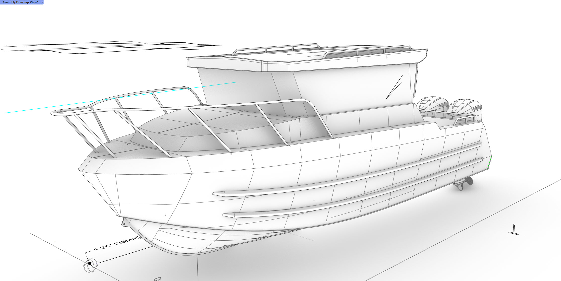 Hull weight approx = 1332 lbs (604kg) (No Motor / No Fuel)